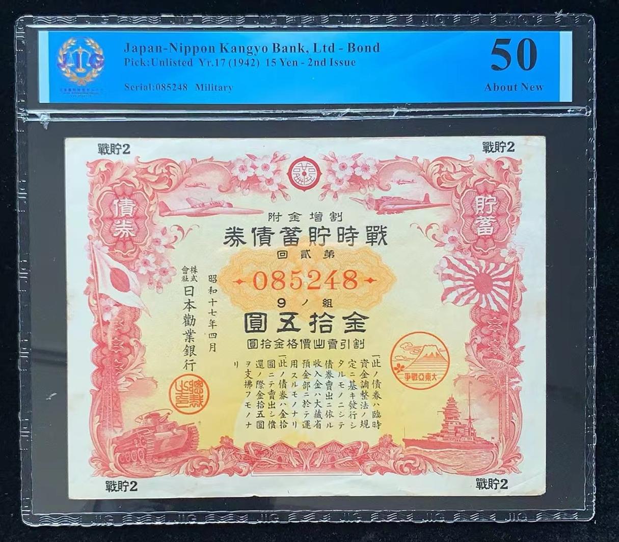 日本 / 日本劝业银行-债券, 15 日元 Yr.17 (1942)- 第二次发行