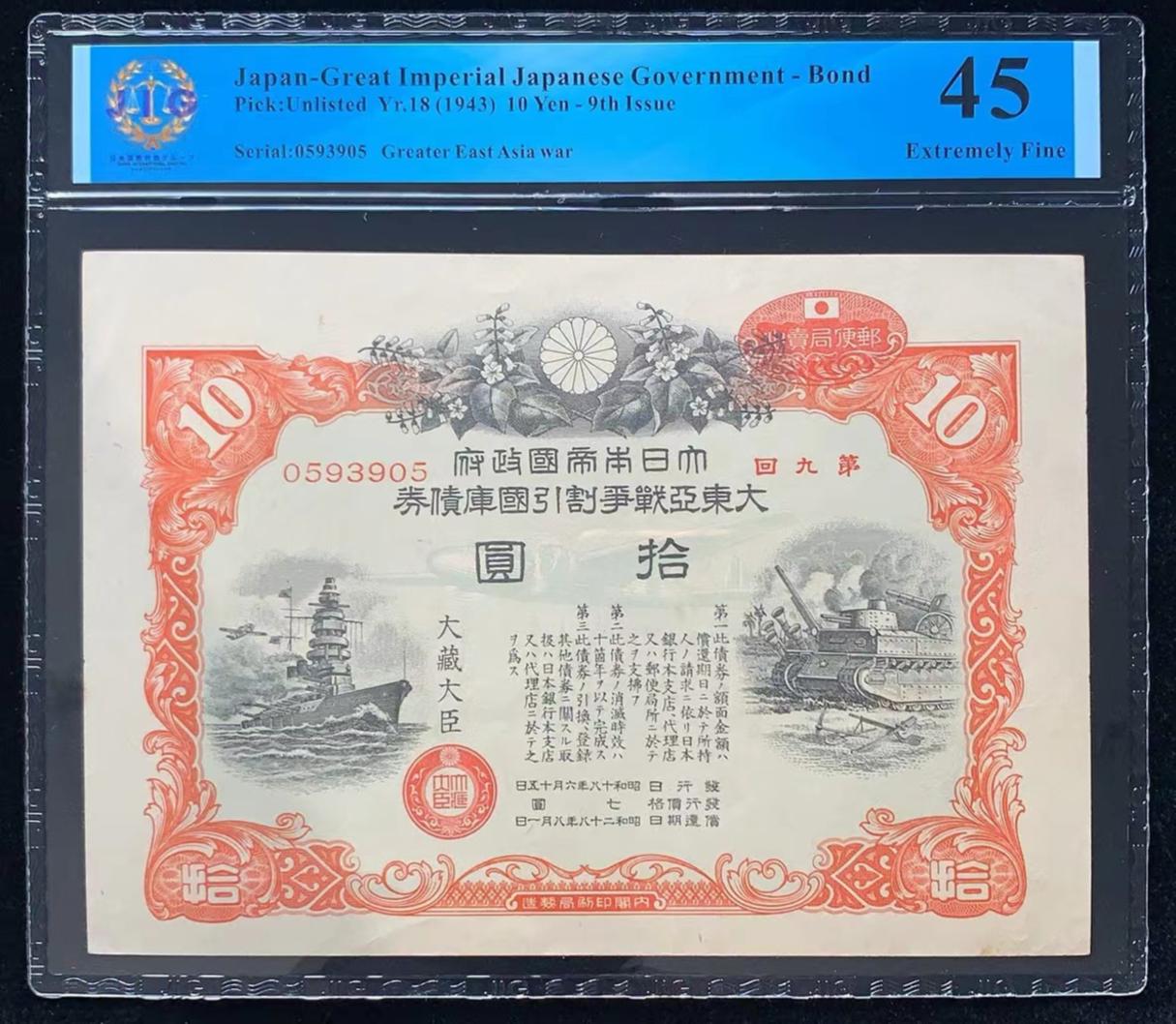 日本 / 大日本帝国政府-债券, 10 日元 Yr.18 (1943)- 第九次发行