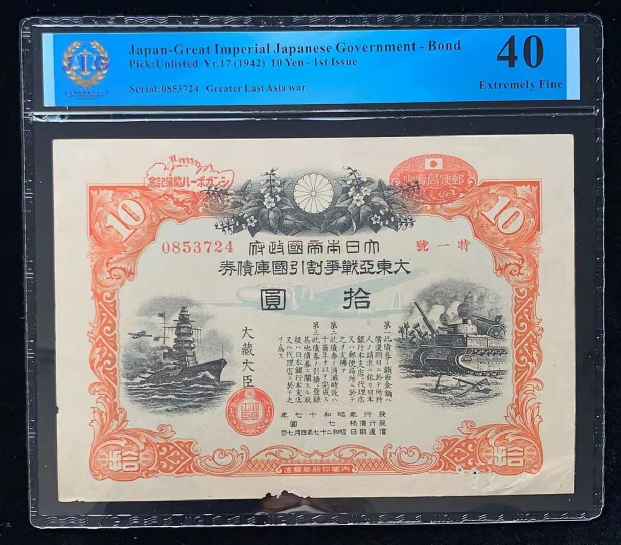 日本 / 大日本帝国政府-债券, 10 日元 Yr.17 (1942)- 第一次发行