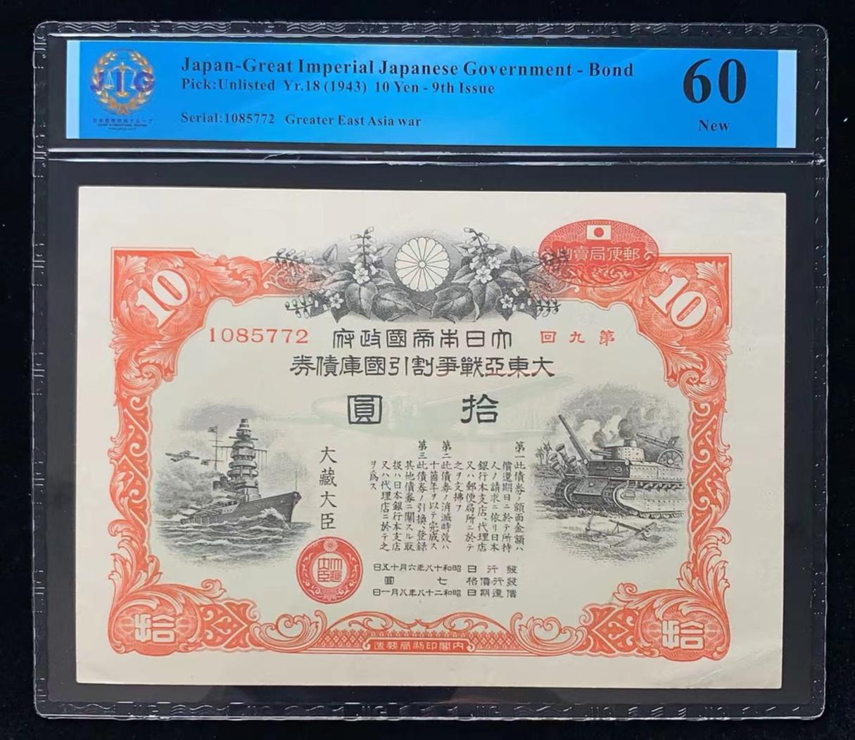日本 / 大日本帝国政府-债券, 10 日元 Yr.18 (1943)- 第九次发行
