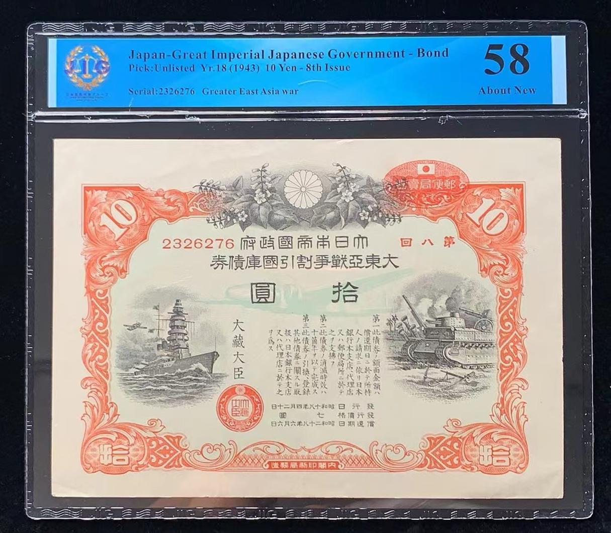 日本 / 大日本帝国政府-债券, 10 日元 Yr.18 (1943)- 第八次发行