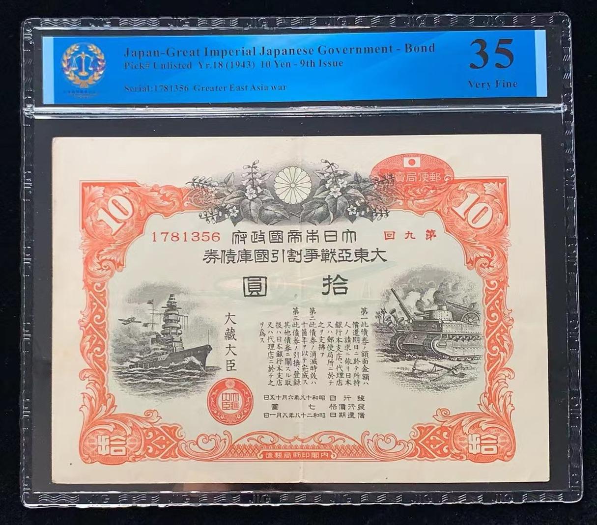 日本 / 大日本帝国政府-债券, 10 日元 Yr.18 (1943)- 第九次发行