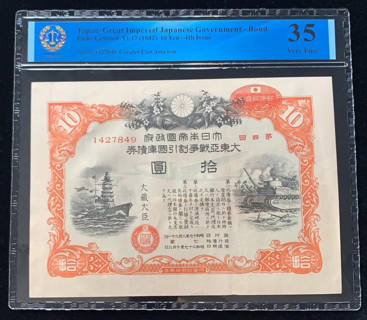 日本 / 大日本帝国政府-债券, 10 日元 Yr.17 (1942)- 第四次发行