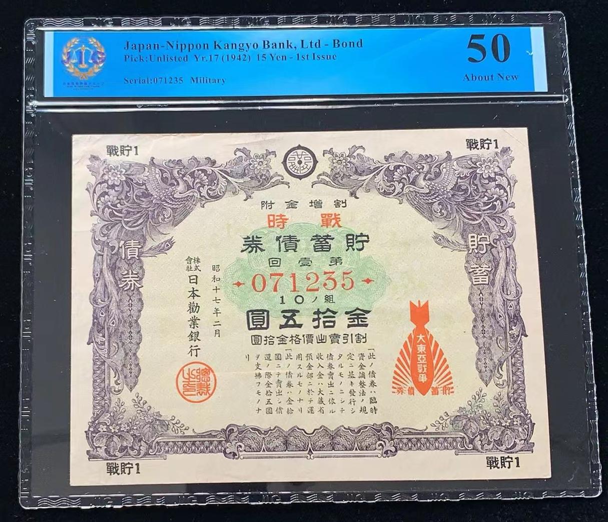日本 / 日本劝业银行-债券, 15 日元 Yr.17 (1942)- 第一次发行