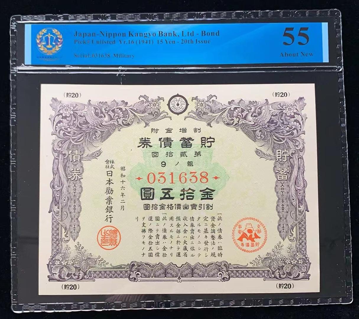 日本 / 日本劝业银行-债券, 15 日元 Yr.16 (1941)- 第二十次发行