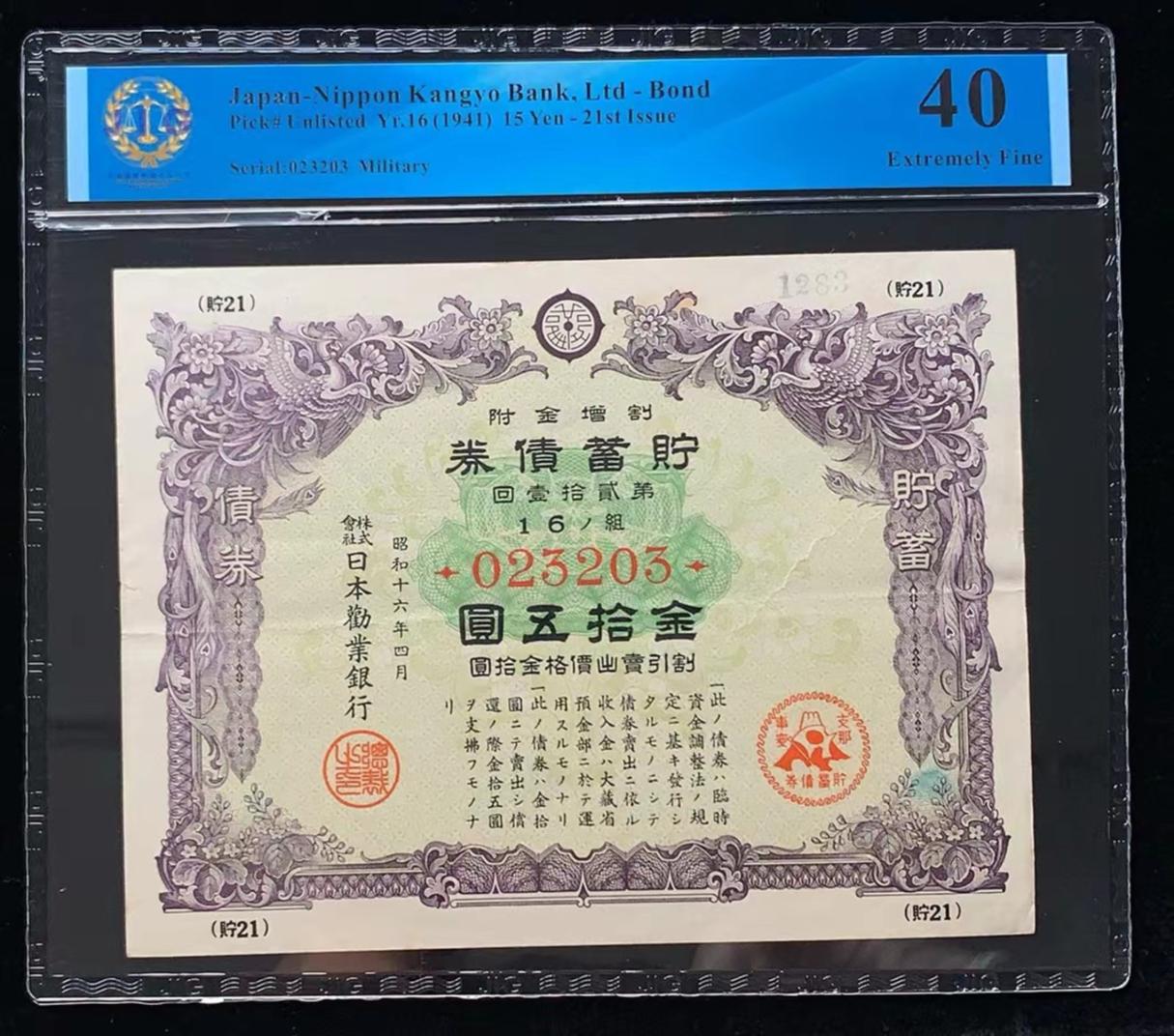 日本 / 日本劝业银行-债券, 15 日元 Yr.16 (1941)- 第二十一次发行