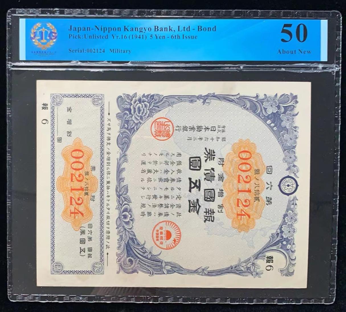 日本 / 日本劝业银行-债券, 5 日元 Yr.16 (1941)- 第六次发行