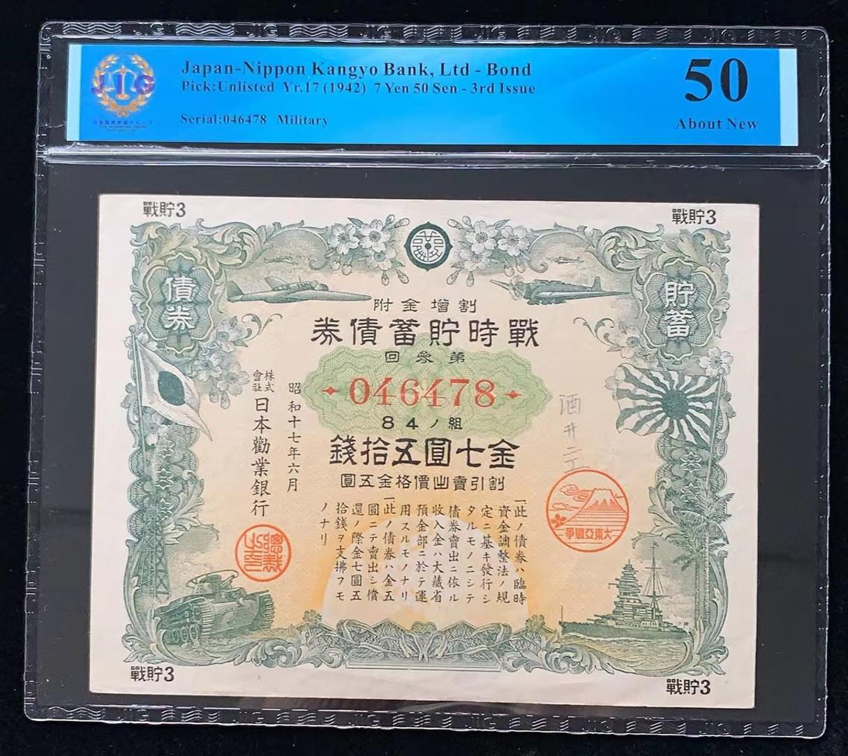日本 / 日本劝业银行-债券, 7 日元 50 钱Yr.17 (1942)- 第三次发行