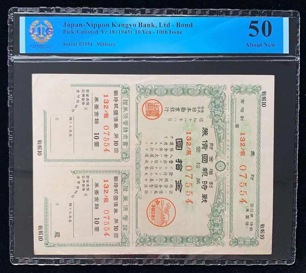 日本 / 日本劝业银行-债券, 10 日元 Yr.18 (1943)- 第十次发行