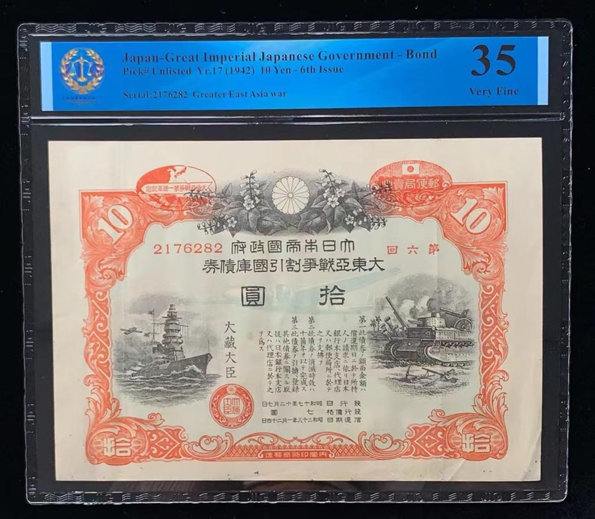 日本 / 大日本帝国政府-债券, 10 日元 Yr.17 (1942)- 第六次发行