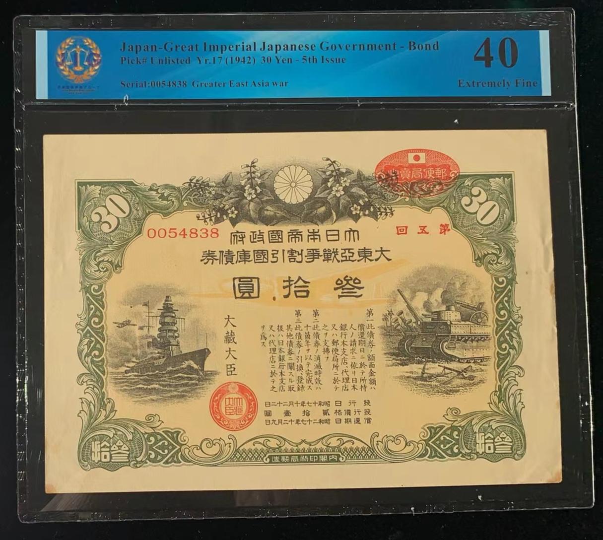 日本 / 大日本帝国政府-债券, 30日元 Yr.17 (1942)- 第五次发行