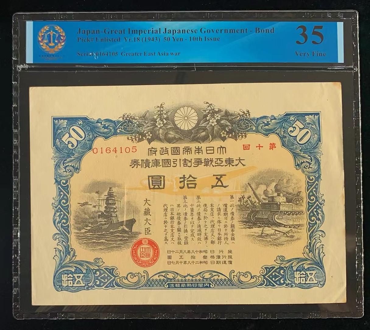 日本 / 大日本帝国政府-债券, 50 日元 Yr.18 (1943)- 第十次发行