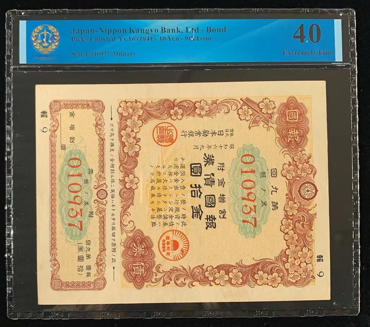 日本 / 日本劝业银行-债券, 10 日元 Yr.16 (1941)- 第九次发行