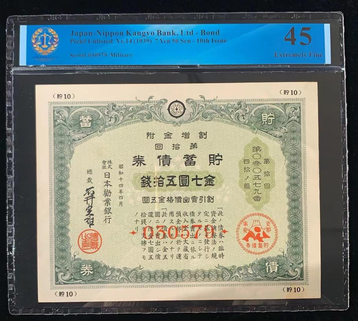 日本 / 日本劝业银行-债券, 7 日元 50 日元 Yr.14 (1939)- 第十次发行