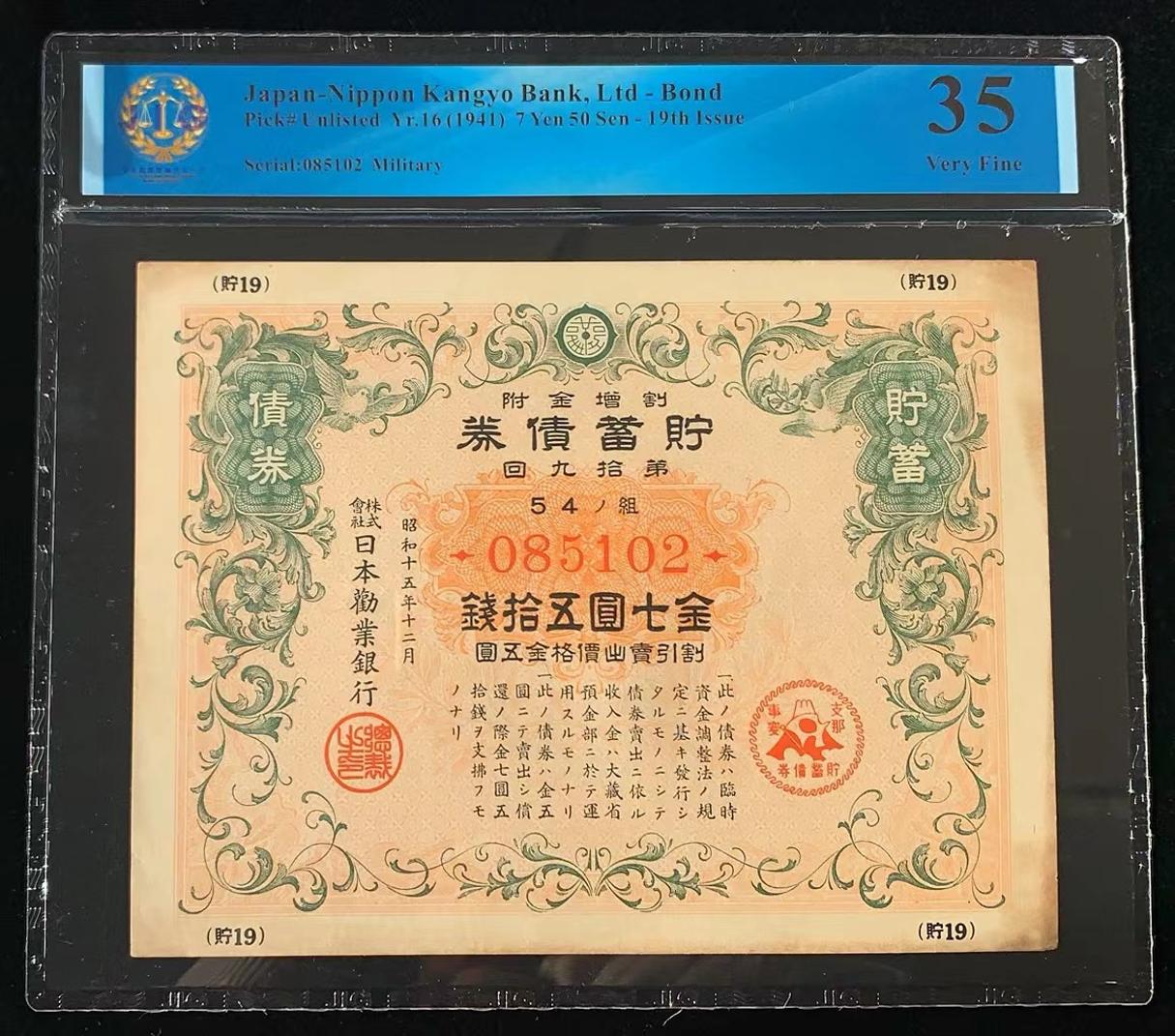 日本 / 日本劝业银行-债券, 7 日元 50 日元 Yr.16 (1941)- 第十九次发行
