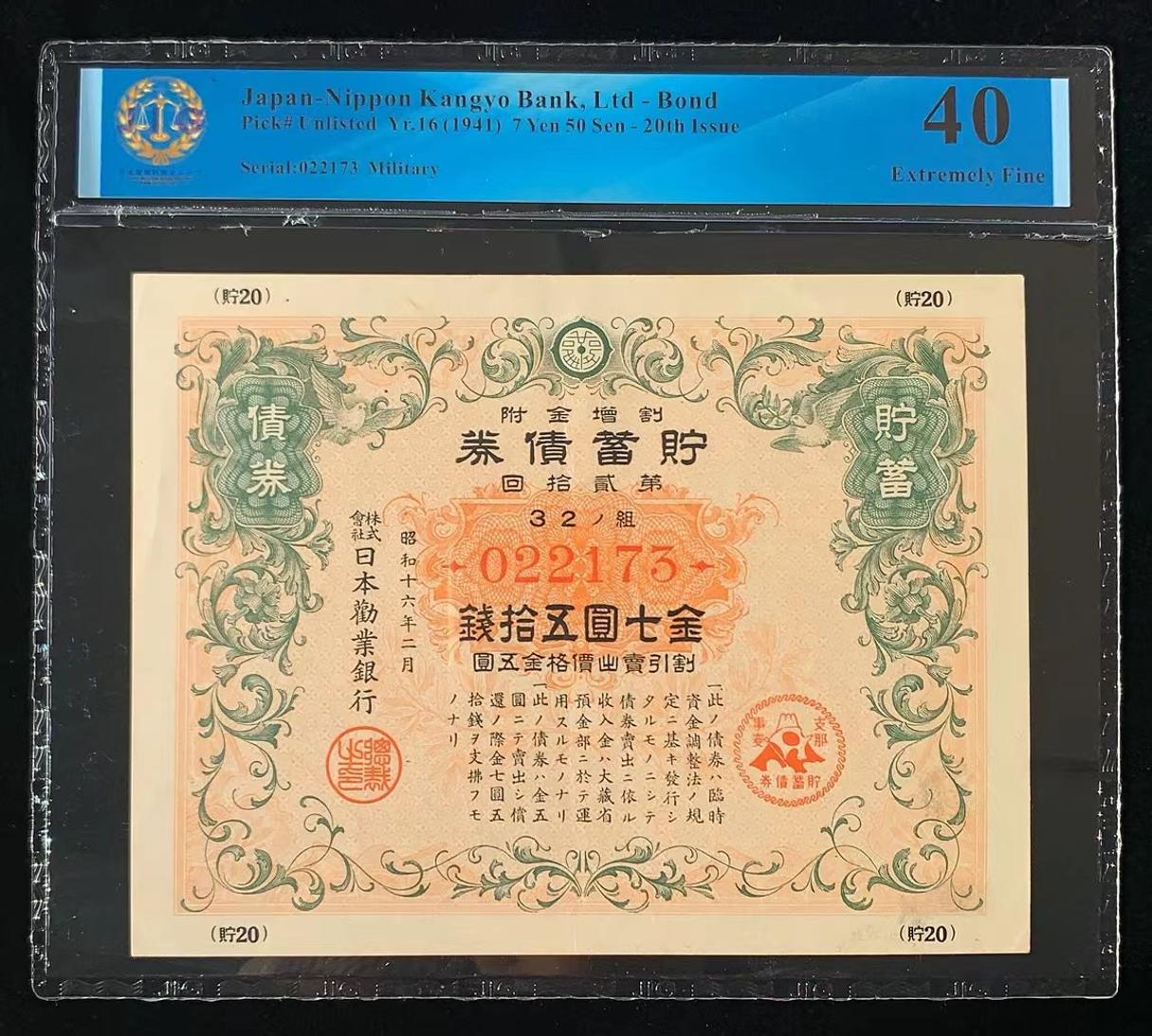日本 / 日本劝业银行-债券, 7 日元 50 日元 Yr.16 (1941)- 第二十次发行