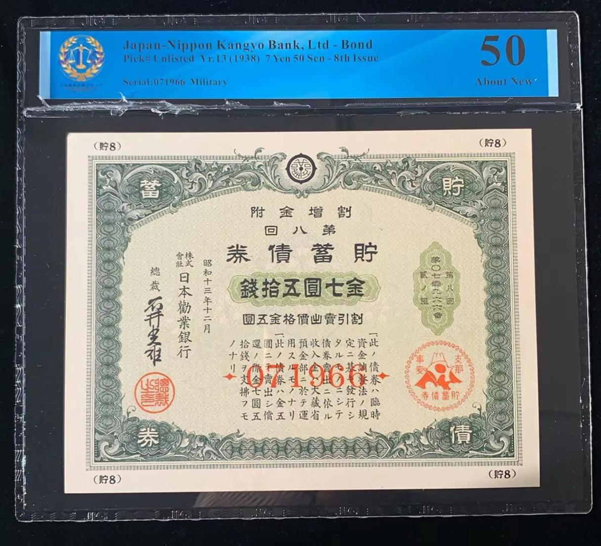 日本 / 日本劝业银行-债券, 7 日元 50 日元 Yr.13 (1938)- 第八次发行