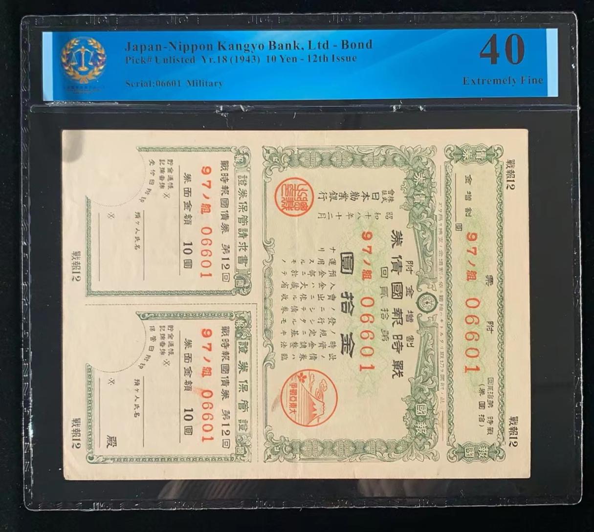 日本 / 日本劝业银行-债券, 10 日元 Yr.18 (1943)- 第十二次发行