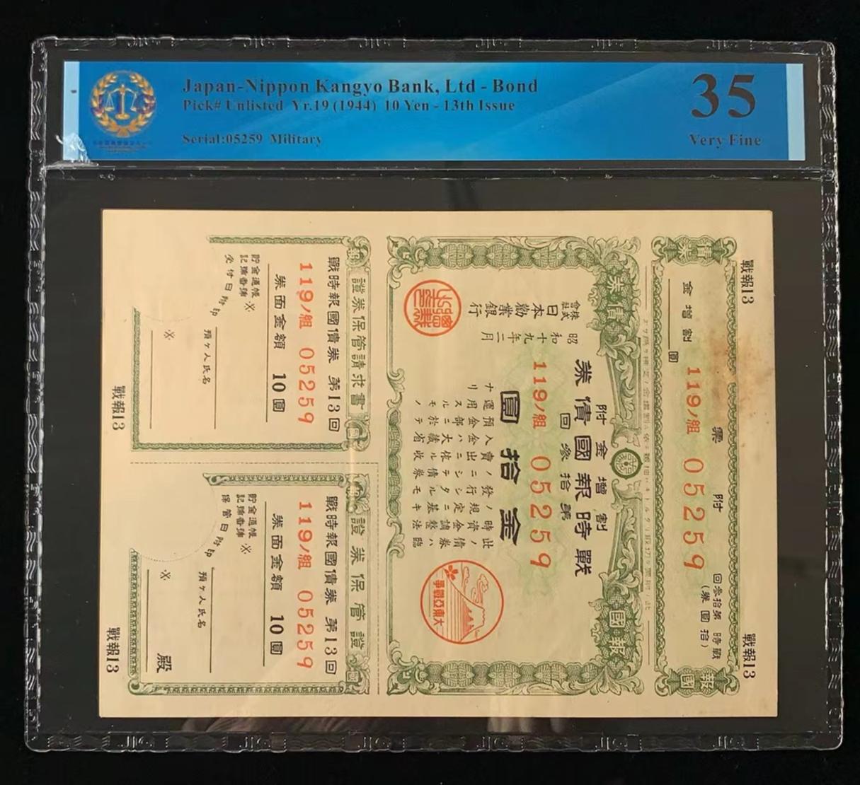 日本 / 日本劝业银行-债券, 10 日元 Yr.19 (1944)- 第十三次发行