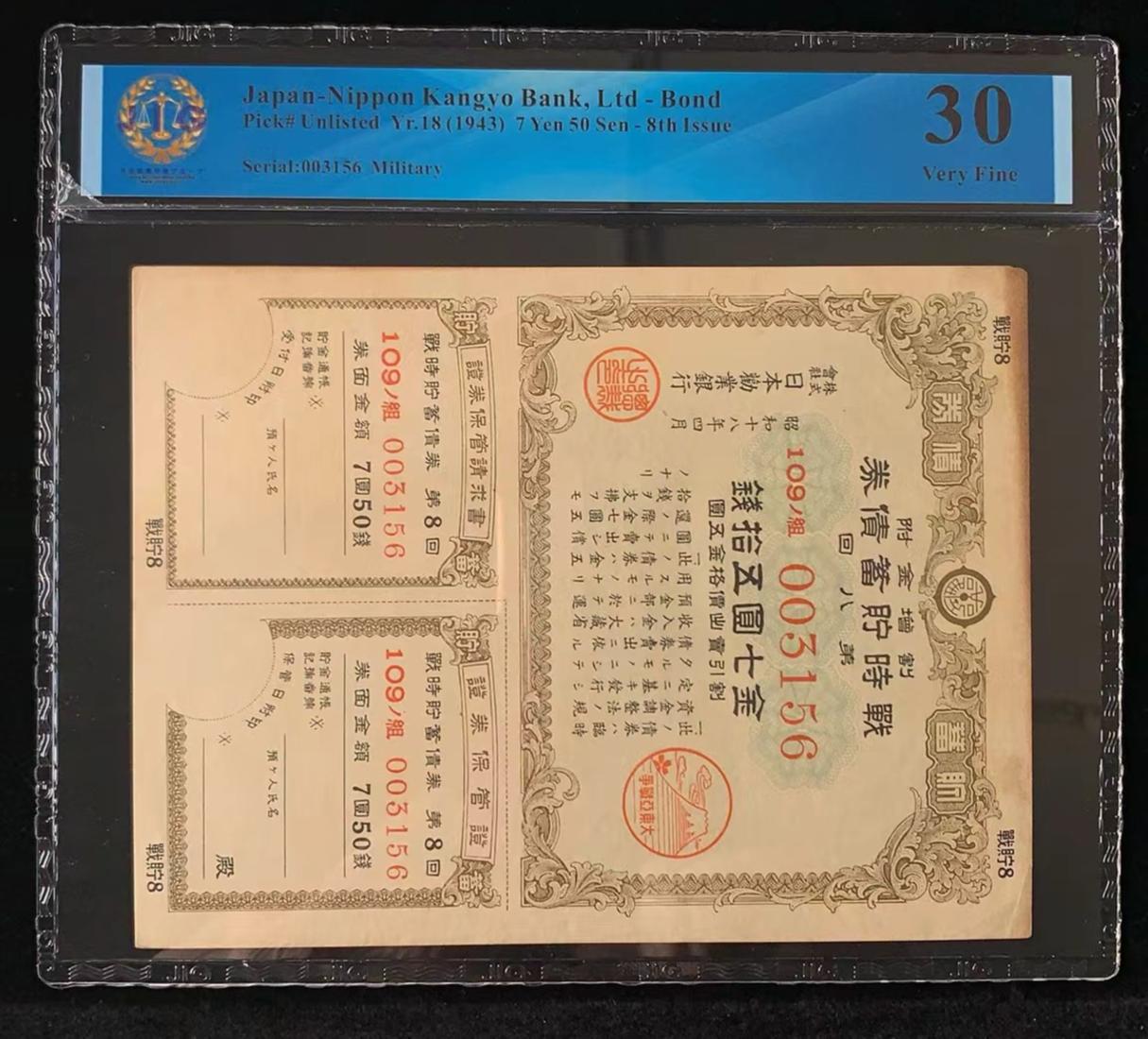 日本 / 日本劝业银行-债券, 7 日元 50 日元 Yr.18 (1943)- 第八次发行