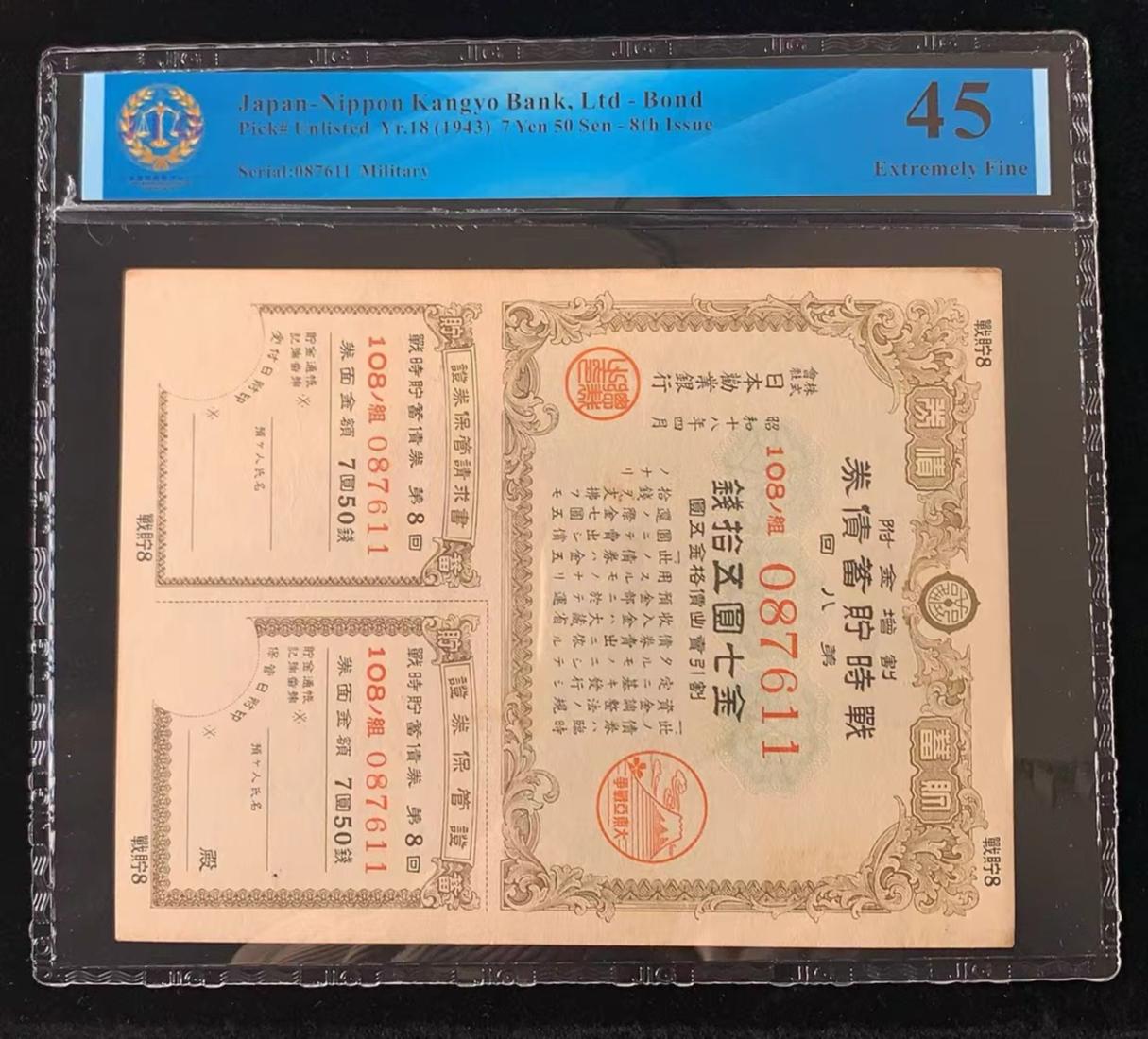 日本 / 日本劝业银行-债券, 7 日元 50 日元 Yr.18 (1943)- 第八次发行