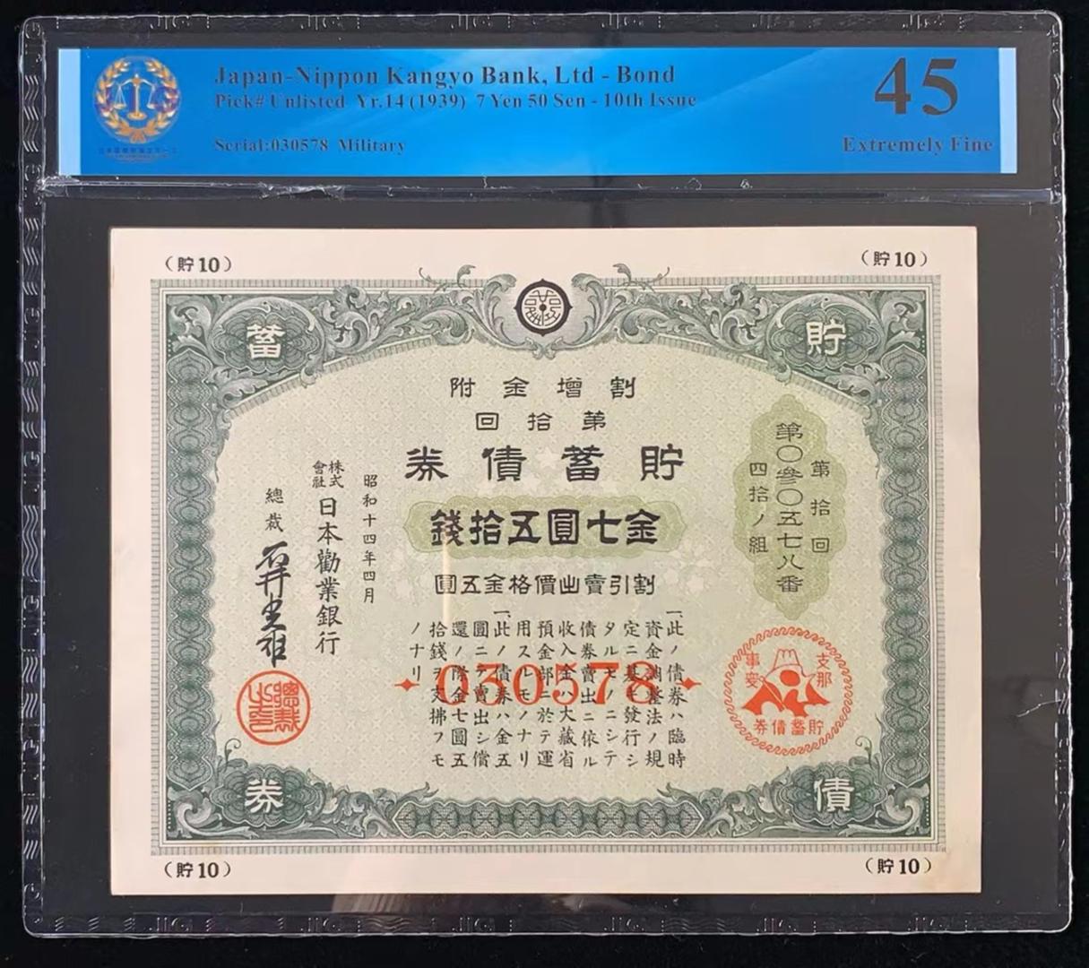 日本 / 日本劝业银行-债券, 7 日元 50 日元 Yr.14 (1939)- 第十次发行