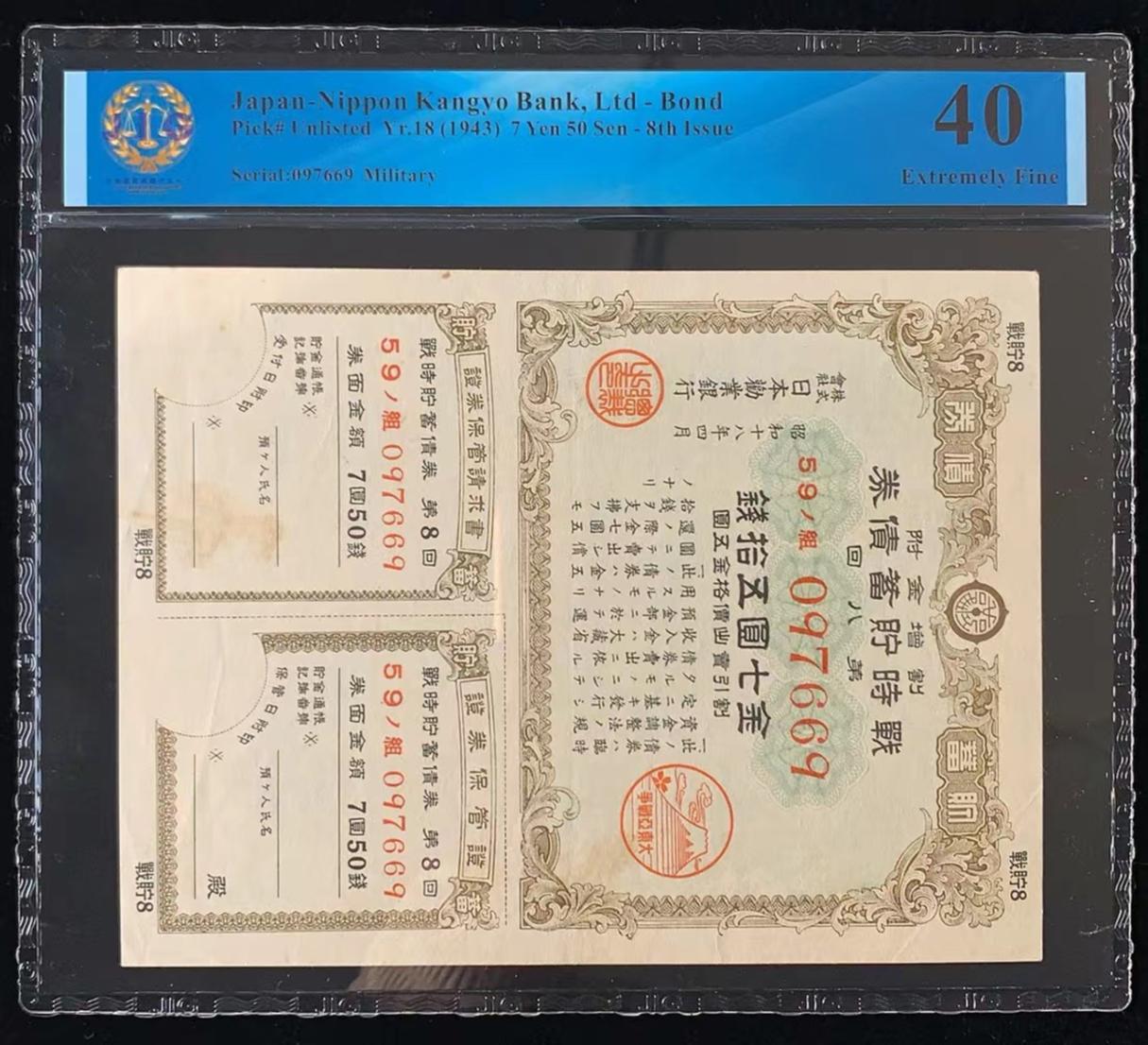 日本 / 日本劝业银行-债券, 7 日元 50 日元 Yr.18 (1943)- 第八次发行
