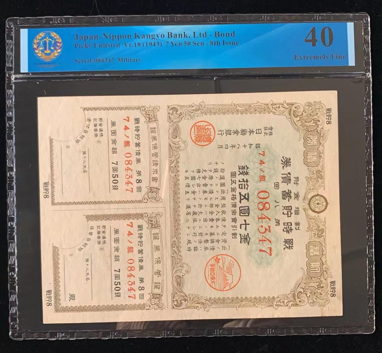 日本 / 日本劝业银行-债券, 7 日元 50 日元 Yr.18 (1943)- 第八次发行