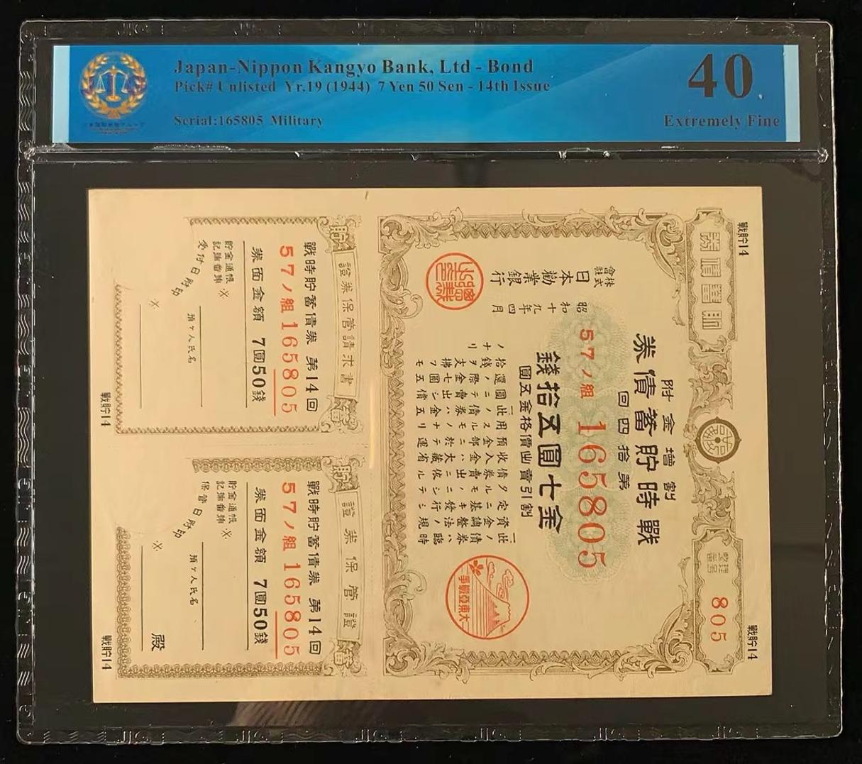 日本 / 日本劝业银行-债券, 7 日元 50 日元 Yr.19 (1944)- 第十四次发行