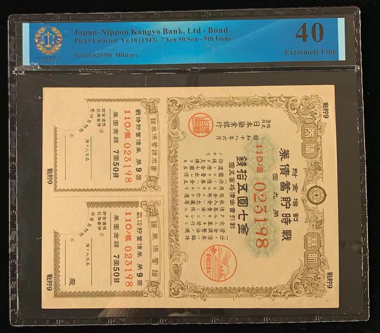 日本 / 日本劝业银行-债券, 7 日元 50 日元 Yr.18 (1943)- 第九次发行