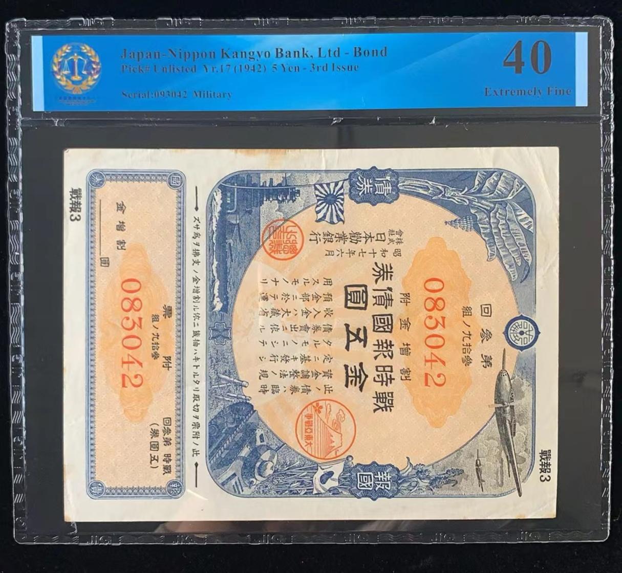 日本 / 日本劝业银行-债券, 5 日元 Yr.17 (1942)- 第三次发行