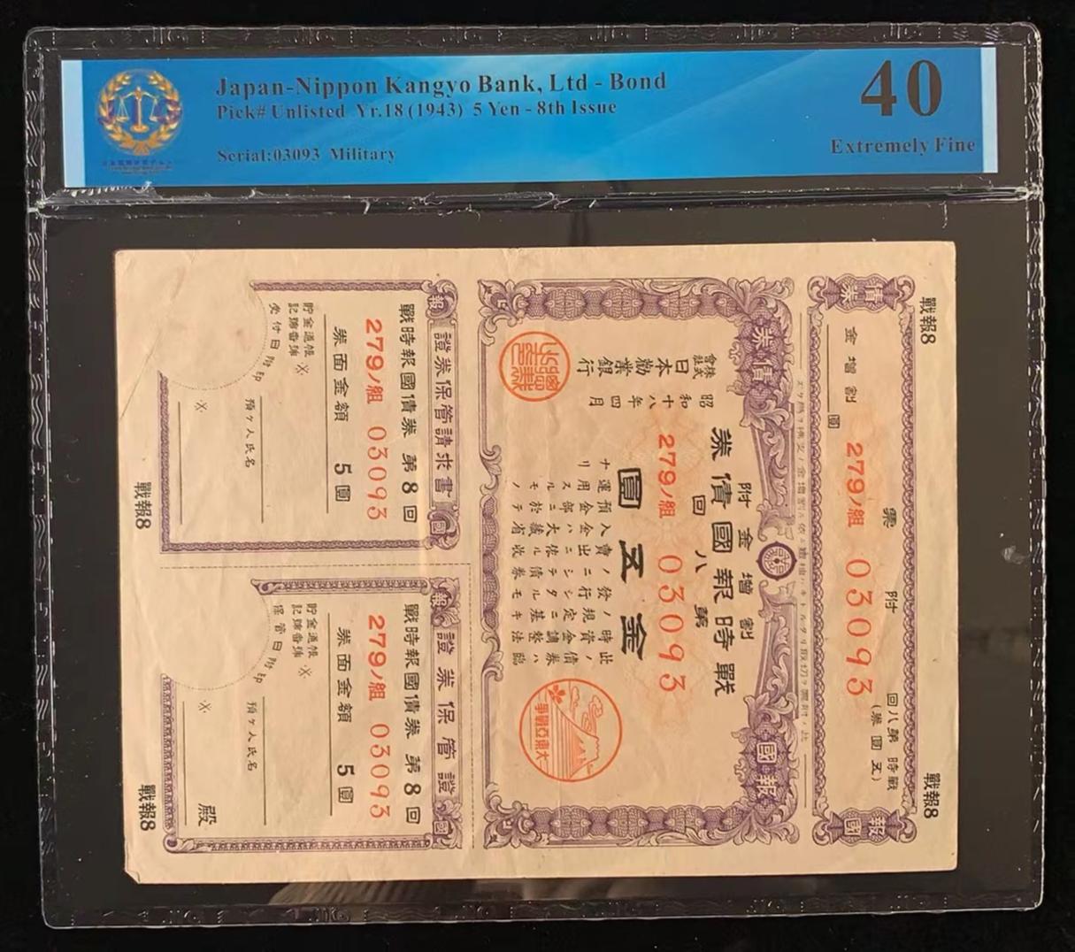 日本 / 日本劝业银行-债券, 5 日元 Yr.18 (1943)- 第八次发行