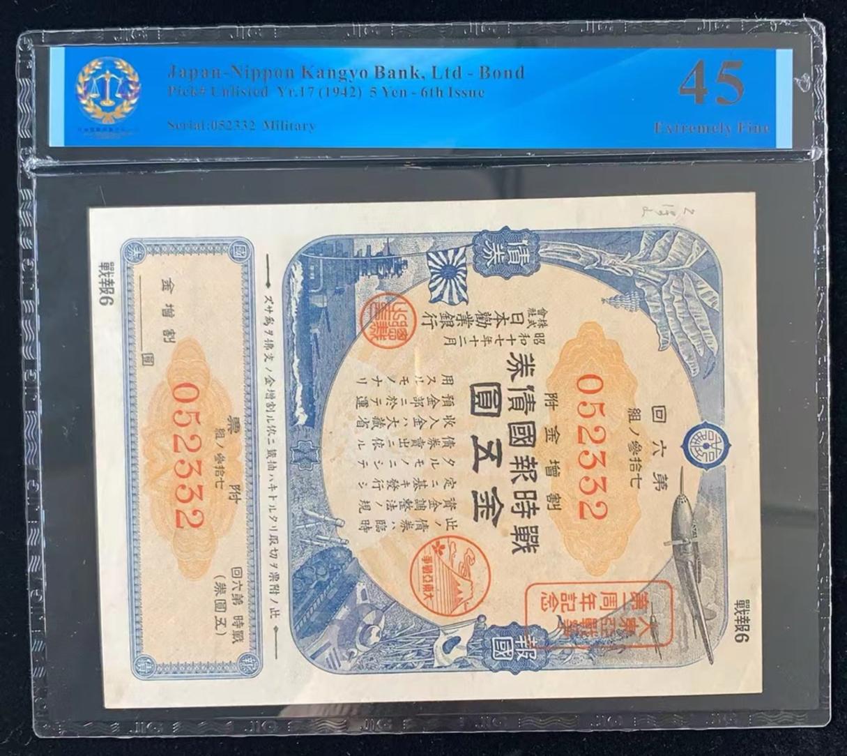 日本 / 日本劝业银行-债券, 5 日元 Yr.17 (1942)- 第六次发行