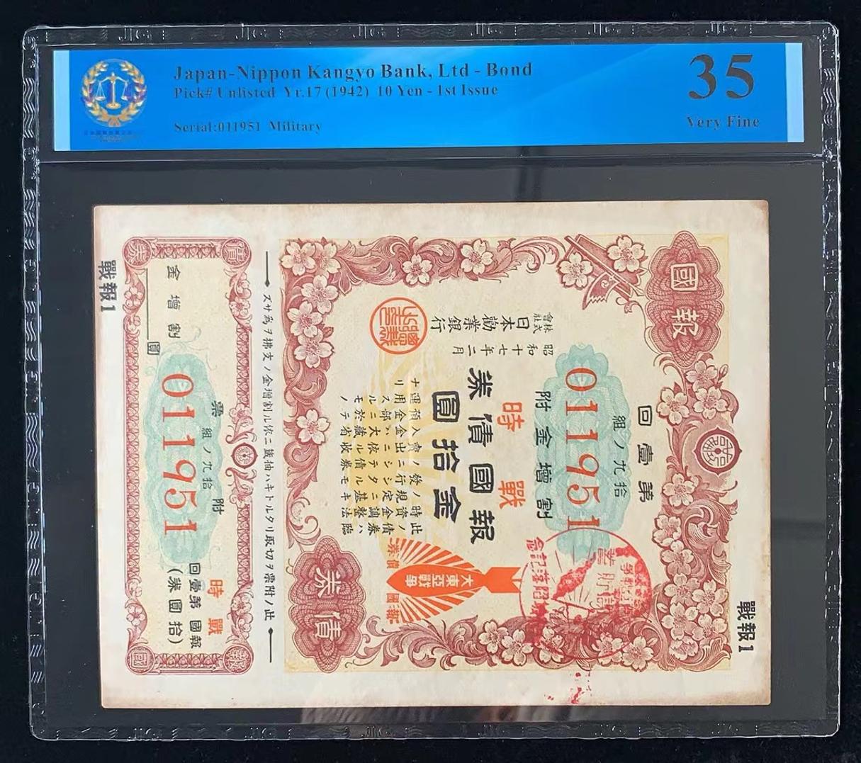 日本 / 日本劝业银行-债券, 10 日元 Yr.17 (1942)- 第一次发行