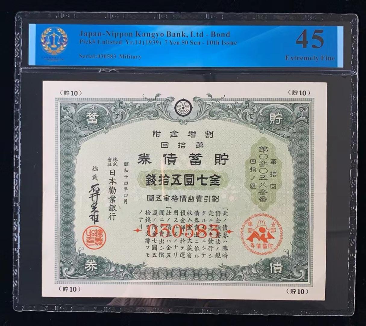 日本 / 日本劝业银行-债券, 7 日元 50 日元 Yr.14 (1939)- 第十次发行