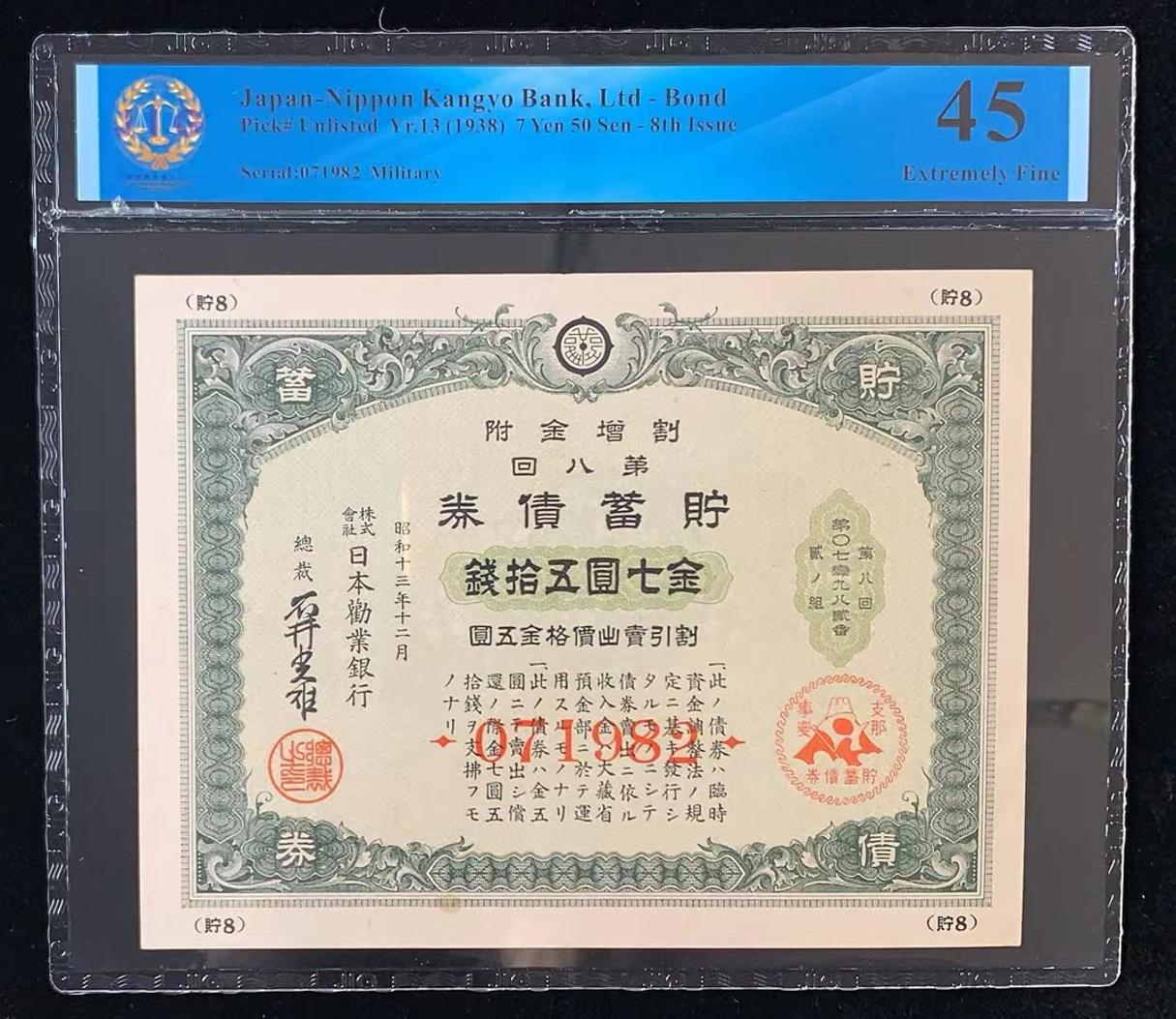日本 / 日本劝业银行-债券, 7 日元 50 日元 Yr.13 (1938)- 第八次发行