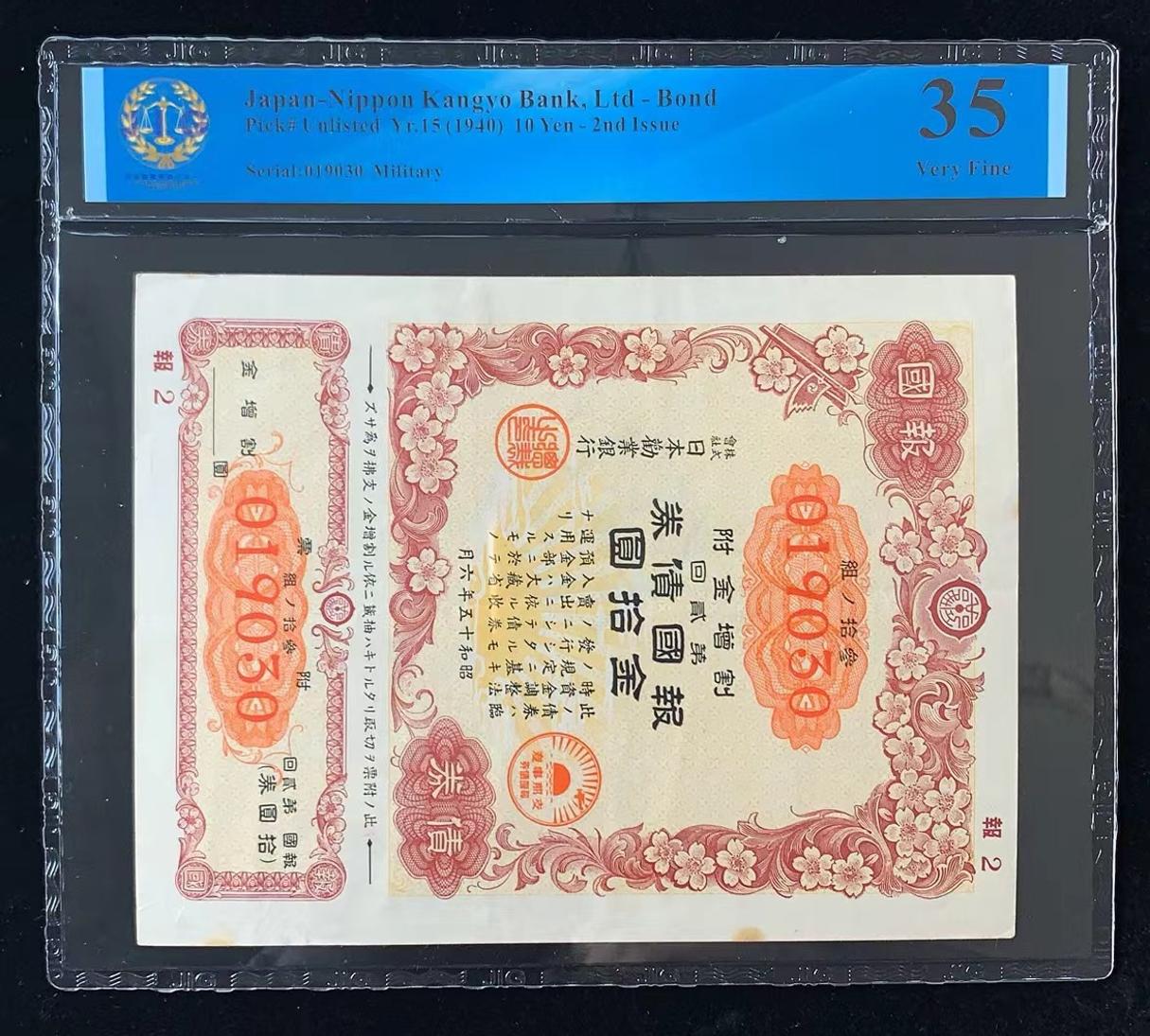 日本 / 日本劝业银行-债券, 10 日元 Yr.15 (1940)- 第二次发行
