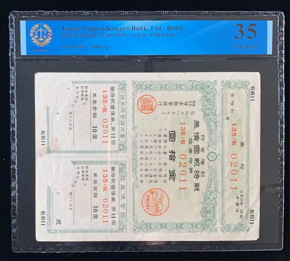 日本 / 日本劝业银行-债券, 10 日元 Yr.18 (1943)- 第十一次发行