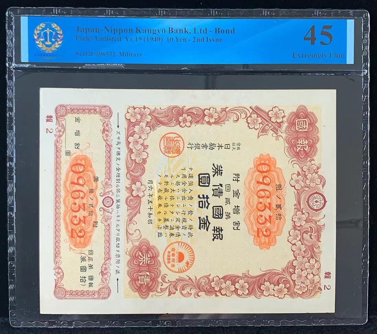 日本 / 日本劝业银行-债券, 10 日元 Yr.15 (1940)- 第二次发行