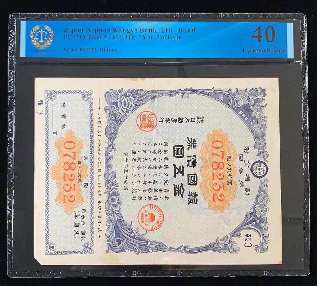 日本 / 日本劝业银行-债券, 5 日元 Yr.15 (1940)- 第三次发行