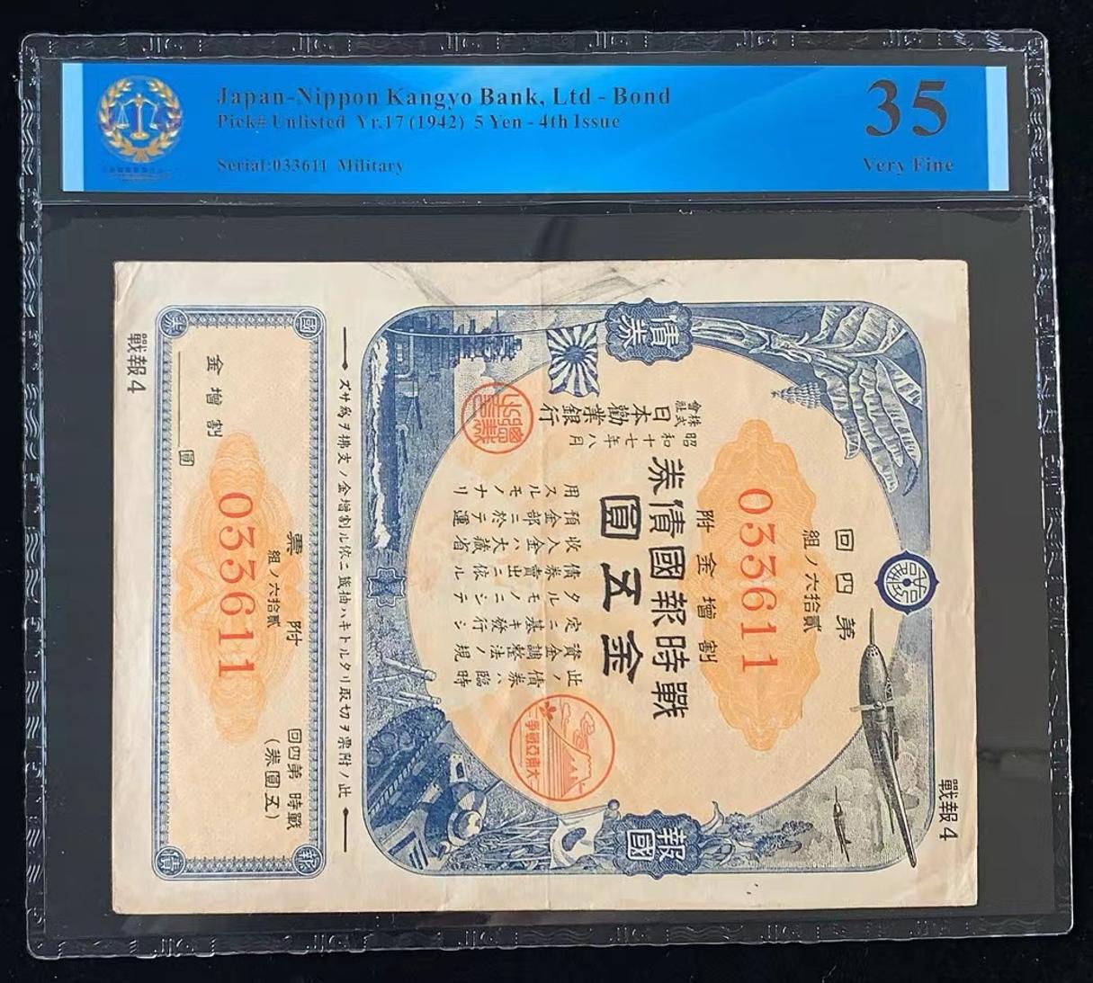 日本 / 日本劝业银行-债券, 5 日元 Yr.17 (1942)- 第四次发行