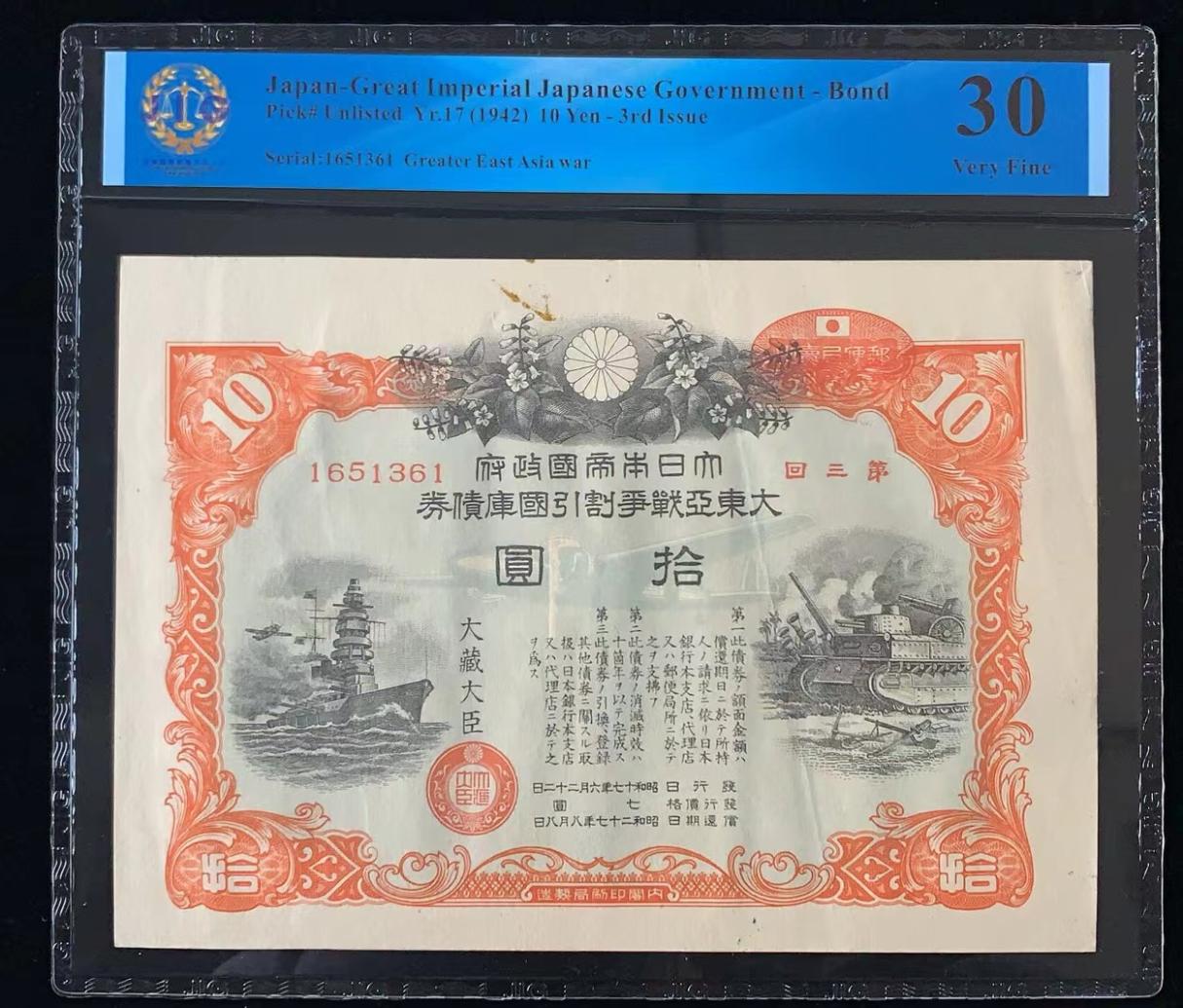 日本 / 大日本帝国政府-债券, 10 日元 Yr.17 (1942)- 第三次发行