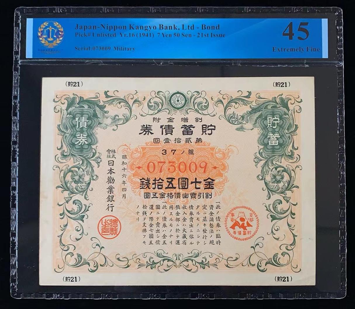 日本 / 日本劝业银行-债券, 7 日元 50 日元 Yr.16 (1941)- 第二十一次发行