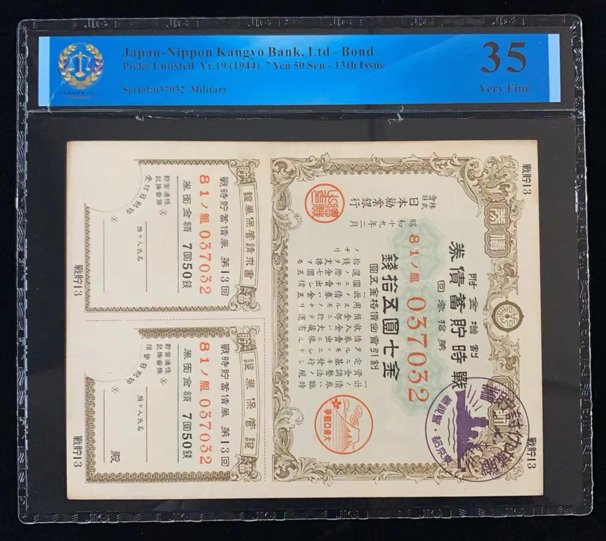 日本 / 日本劝业银行-债券, 7 日元 50 日元 Yr.19 (1944)- 第十三次发行