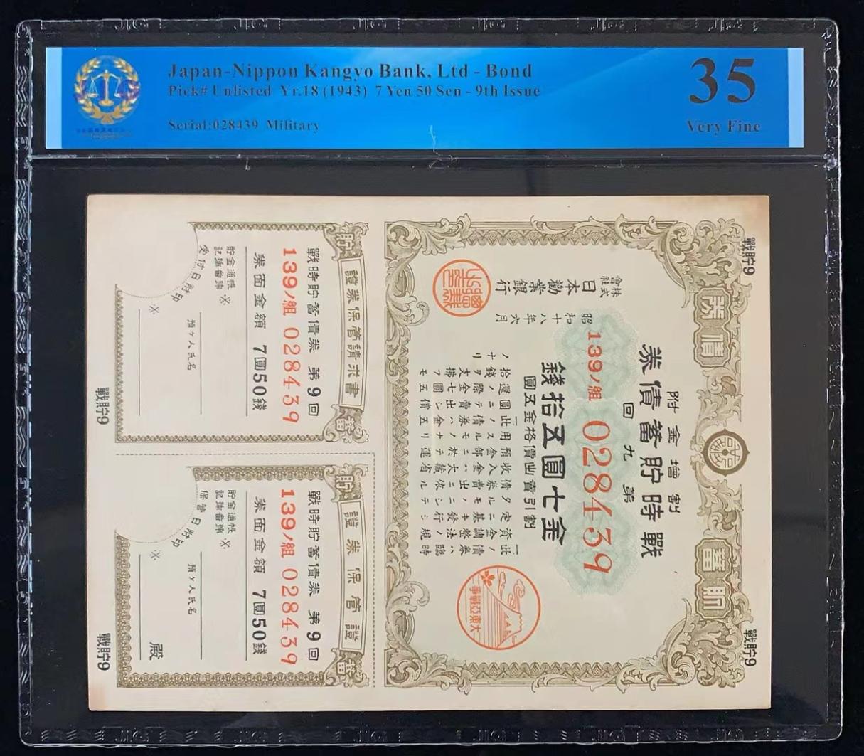 日本 / 日本劝业银行-债券, 7 日元 50 日元 Yr.18 (1943)- 第九次发行