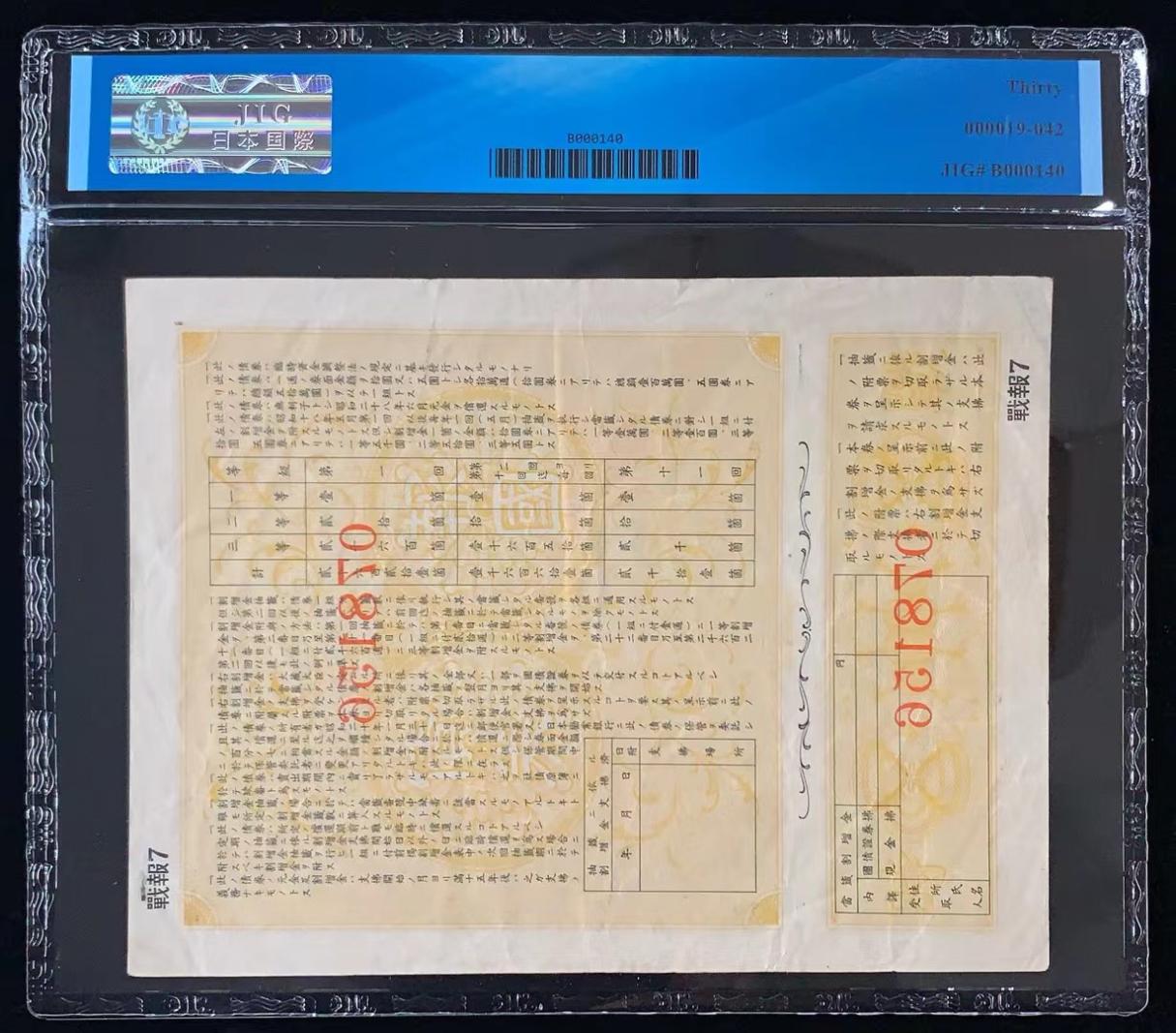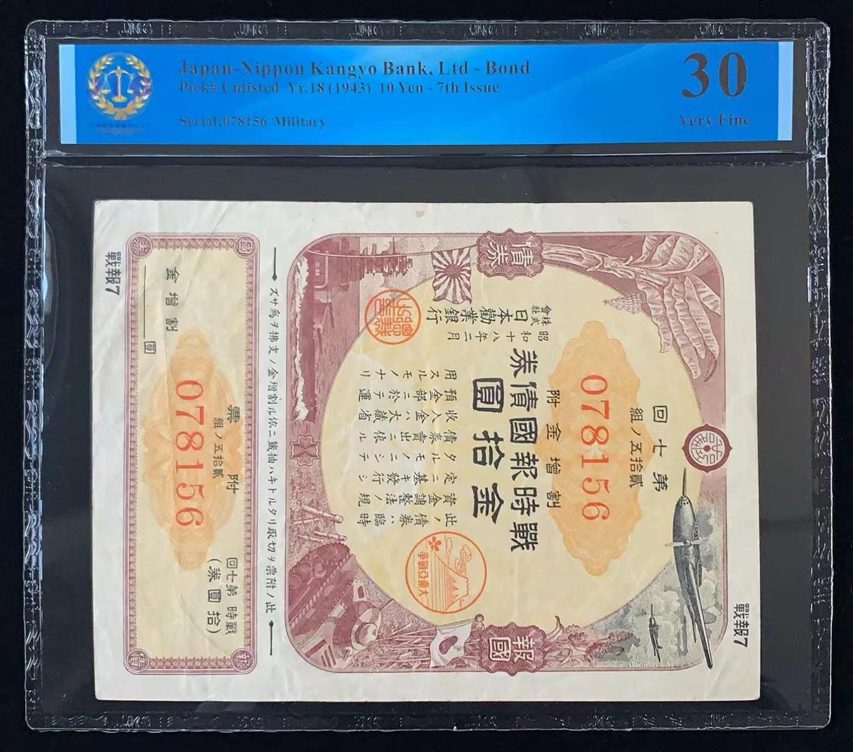 日本 / 日本劝业银行-债券, 10 日元 Yr.18 (1943)- 第七次发行