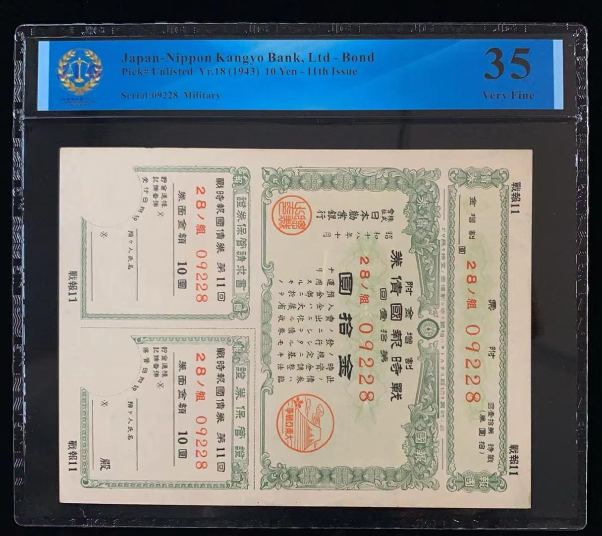 日本 / 日本劝业银行-债券, 10 日元 Yr.18 (1943)- 第十一次发行