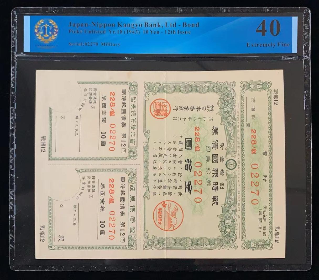 日本 / 日本劝业银行-债券, 10 日元 Yr.18 (1943)- 第十二次发行