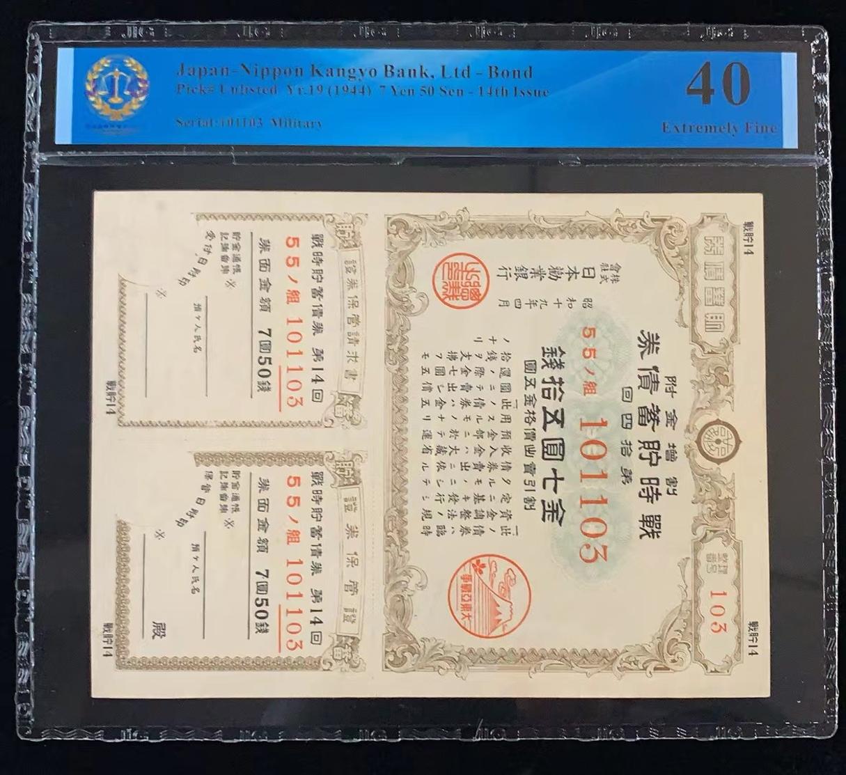 日本 / 日本劝业银行-债券, 7 日元 50 日元 Yr.19 (1944)- 第十四次发行