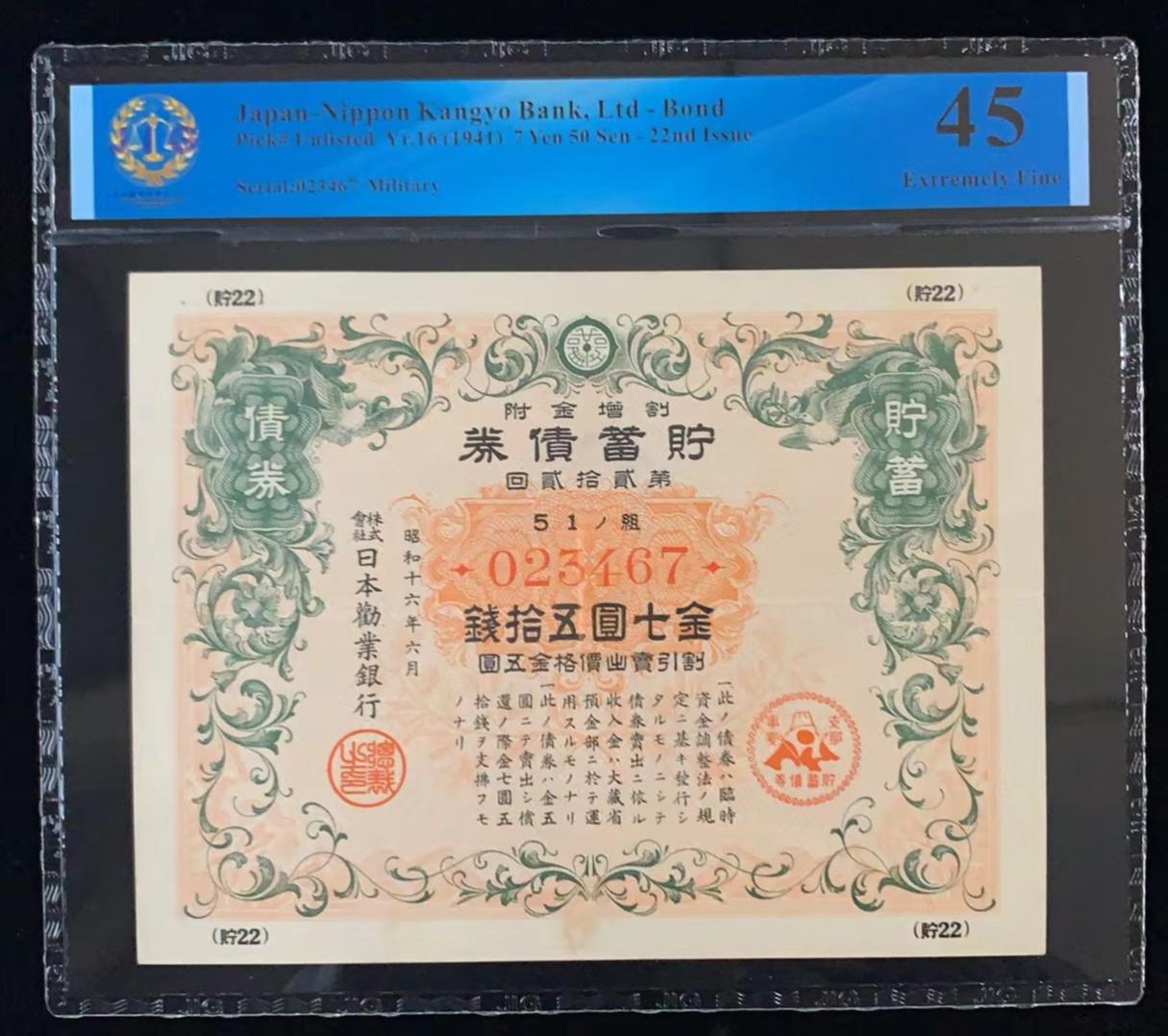 日本 / 日本劝业银行-债券, 7 日元 50 日元 Yr.16 (1941)- 第二十二次发行